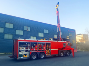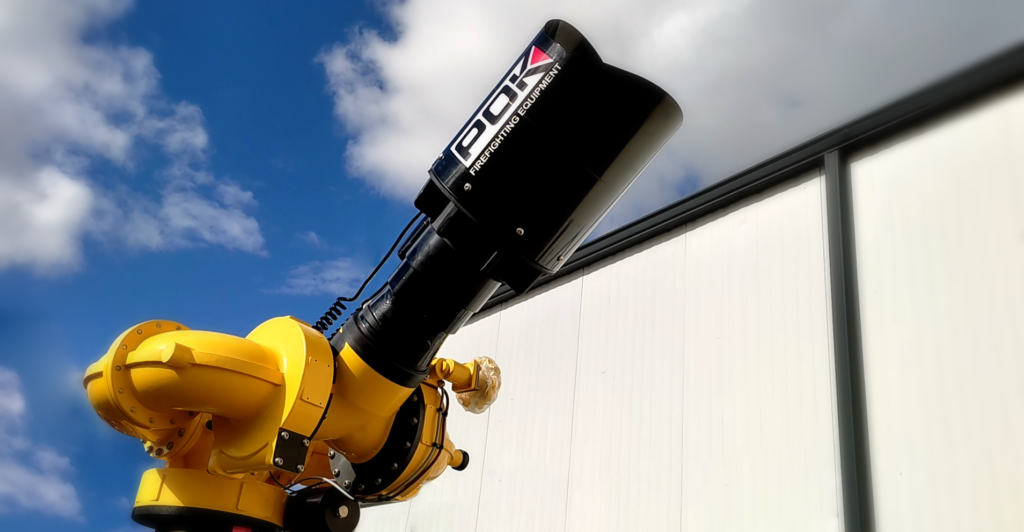 Cet équipementier Chinois a eu pour projet, d’installer cette lance monitor sur un mât télescopique de 8 mètres se déployant au sommet d’un camion-pompe.