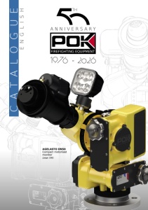 38 POK SAS - 18 Cours Antoine Lavoisier - 10400 Nogent-sur-Seine - FRANCE Phone: +33 (0)3 37 49 53 - 000 - Email: export@pok-fire.com - Web: www.pok-fire.com Adjustable flow rate and stream patterns hand nozzles with slide valve TECHNICAL CHARACTERISTICS • Flow rate and flush adjusted by rotating the flow rate selecting ring. The available flow rates are engraved on the flow rate selecting ring. By rotating the ring to the desired setting, the flow rate will be set to this value at 6 bar , reference pressure. A tactile indicator allows the user to identify the maximum flow rate setting even in total darkness and while wearing firefighting gloves in compliance wih the norm EN 659 . • The flow rate selecting ring also has a position marked “PURGE” (or FLUSH). In this position the valve is pulled away from the nozzle, which allows the removal of particles which could interfere with the proper hydraulic operation of the nozzle. • Adjustable stream pattern : The rotation of the indexed head ring allows the user to progress from a straight spray to a narrow spray, also called "Flash Over”, to a full fog diffusion cone of 130° forming a water wall. The tactile and visual indicators allow the user to know the type of spray in total darkness even while wearing firefighting gloves in compliance with the EN 659 norm. • Swivelling inlet coupling . • Protection filter against pebbles at the inlet coupling. • PN40 (with suitable connection, on 150 and 235 Lpm models with threaded inlet). • PN16 (with non adapted PN40 connection). • Quick Open/Closed shutoff valve. Swivelling inlet coupling compliant with international norms Polyurethane operating handle. Quick-opening and quick-closing slide valve with indexed positions. Polyurethane anti-shock head sheath with tactile markings indicating the different stream patterns. Stream pattern selection on 3 positions: - straight spray, - attack spray (30°) - full fog diffusion (130°) Flow rate ring allowing selection of preset flow rates at reference pressure (6 bar). “FLUSH” position at the end of the flow rate selecting ring. The tactile marker indicates the highest flow rate. CONSTRUCTION • Construction in aluminium alloy, new primary alloy, extremely light. • Resistant to mechanical shocks and chemical attacks thanks to 50μ hard anodisation . • Head shock protection by means of a polyurethane head sheath . This elastomer does not melt when heated, and is an excellent insulator, which allows the user to work under high heat conditions without getting burnt, and does not stick to fingers in low temperatures. • Very ergonomic, anti-slip (polyurethane) pistol grip. • Stainless steel axles and screws. C o n f o r m e à l a n o r m e EN 15182-2 C o n f o r m t o n o r m EN 15182-2 M a x . w o r k i n g p r e s s u r e PN40 Your ads here Information and contact on page 8.
